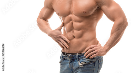 Shirtless Male Torso With Perfect Abs Man In Blue Jeans Showing His Abs Stock Photo C Dmitryvbel Rambler Ru 220944486