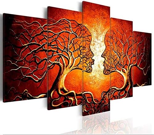 Amazon Com Yatsen Bridge Abstract Wall Art Set Orange For Living Room Decor Lover Kiss Trees Canvas Painting 5 Panels Retro Landscape Lover Trees Artwork Prints Posters Wooden Framed Easy To Hang 60 Wx40 H