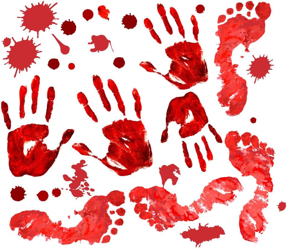 Amazon Com Innovative Stencils Bloody Handprint Footprint Clings Decals Horror Stickers Halloween Blood Splatter Life Size Decorations 3034 Adhesive Decal Good For Wall Floor Home Kitchen