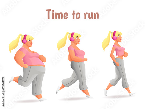 Evolution Slimming Women Cartoon Illustration Of Three Women Of Different Obesity Running Fat Fatness Sports People Desire For Healthy And Sporty Body Fitness Exercises For Weight Loss Buy This Stock Illustration