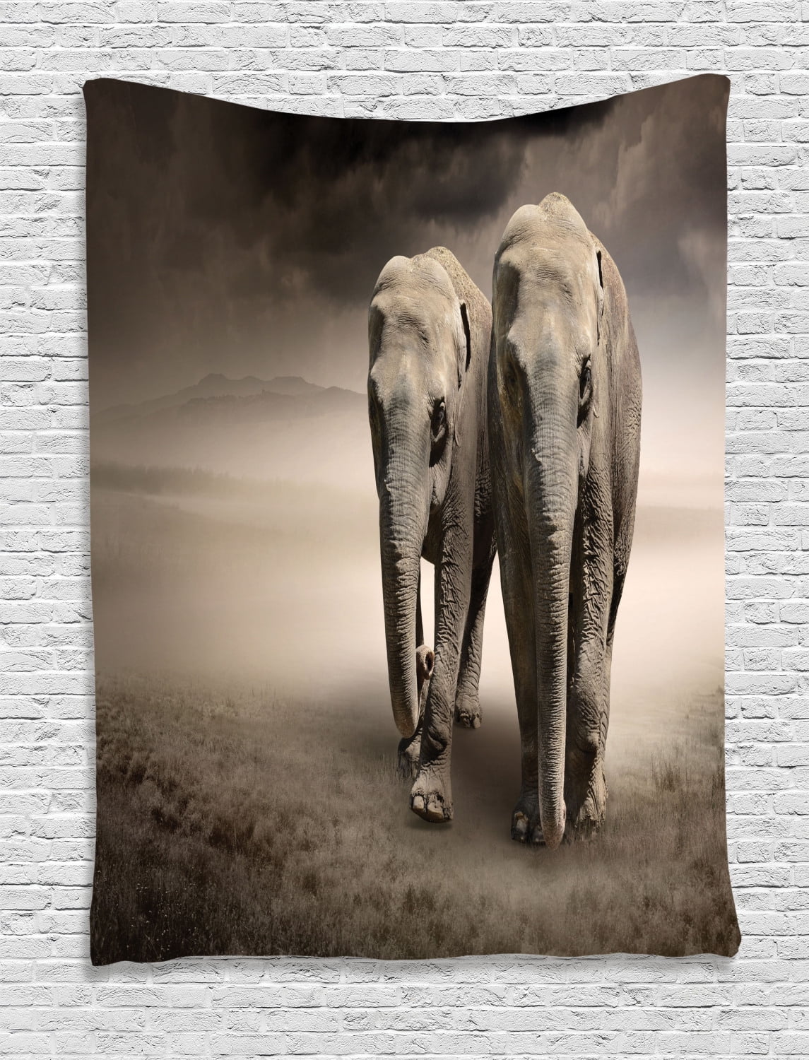 Elephant Tapestry Pair Of Elephants In Motion Walking Dusty Background Clouds Wilderness Desert Print Wall Hanging For Bedroom Living Room Dorm Decor Tan Taupe By Ambesonne Walmart Com