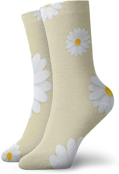 White Daisies On A Pale Yellow Background Crew Socks Men Women Winter Warm Socks At Amazon Men S Clothing Store