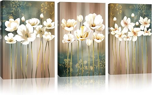 Amazon Com Flower Modern Artwork Canvas Wall Art Bathroom Wall Decor White Blossom Brown Green Abstract Flower Background Canvas Painting Prints Picture Bedroom Kitchen Home Decoration Size 12 X 16 X 3 Pieces Posters